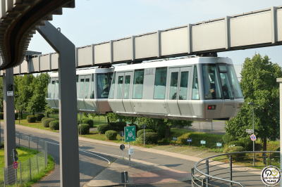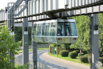 2.シーメンス「SIPEM」懸垂式モノレール「Skytrain」は、ドイツの大手電機メーカーであるシーメンス社が開発した「SIPEM(Siemens People Mover)」方式に基づく自動運転型の交通システムです。SIPEMは、比較的短距離かつ中規模の輸送が求められる空港施設、大学構内、大規模展示場などでの利用を想定して設計された懸垂型モノレールであり、いわゆる「ピープルムーバー」に分類されます。このSIPEM方式が初めて実用化されたのは1984年で、ドイツ・ドルトムント大学に導入された「H-Bahn(ハンギング・バーン)」がその第1号路線となりました。「SIPEM」という名称は「SIemens PEople Mover」の略であり、「シーメンス製の人員輸送システム」を意味しています。
