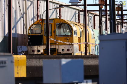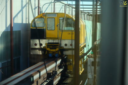 特にDE牽引工作車の重要な役割は、架線作業貨車の輸送にあります。モノレールの電力設備保守では、高所に設置された架線や関連機器に対する点検・更新作業が必要となりますが、その際には専用の作業貨車を所定位置まで搬送する牽引車が不可欠です。DE牽引工作車は、こうした作業編成の先頭に立って運用されることが多く、夜間の限られた作業時間の中で、効率的かつ確実に保守作業を実施するための基盤となっています。
