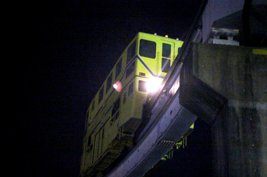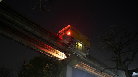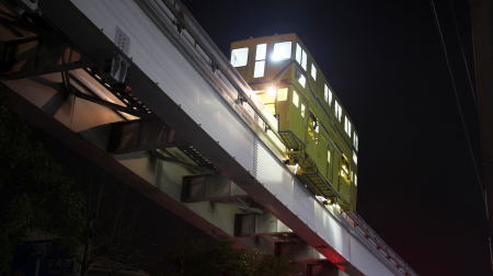 工作車(モノレールの保線作業車)は、モノレールの営業運転が終了した深夜、