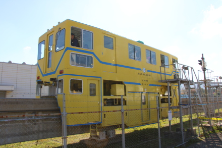この工作車の試乗会と並行して工作車の体験乗車コーナーも設けられました。担当するのは工作車501(ごーまる)。今回試乗会で使用された新型工作車601が導入されるまで、同北九州モノレール社では最新型(最後発と呼ぶべき?)の工作車でした。
