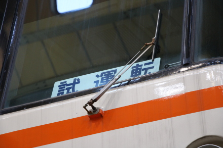 モノレールをよく知る方にとって、今回画像の1101Fが一般向けイベントで展示された事には驚いたのではないでしょうか。表示も「試運転」が掲げられた状態です。