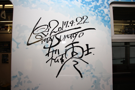 車体壁面には松本零士氏のサインが書き込まれている。(写真右)