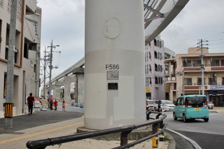 ![]() モノレール営業線、最後の軌道を支えるのはP586支柱 延伸ルートでは、これより順次P587支柱以降の支柱Noが振られています。 |