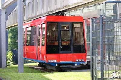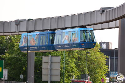 2.シーメンス「SIPEM」懸垂式モノレール「Skytrain」は、ドイツの大手電機メーカーであるシーメンス社が開発した「SIPEM(Siemens People Mover)」方式に基づく自動運転型の交通システムです。SIPEMは、比較的短距離かつ中規模の輸送が求められる空港施設、大学構内、大規模展示場などでの利用を想定して設計された懸垂型モノレールであり、いわゆる「ピープルムーバー」に分類されます。このSIPEM方式が初めて実用化されたのは1984年で、ドイツ・ドルトムント大学に導入された「H-Bahn(ハンギング・バーン)」がその第1号路線となりました。「SIPEM」という名称は「SIemens PEople Mover」の略であり、「シーメンス製の人員輸送システム」を意味しています。