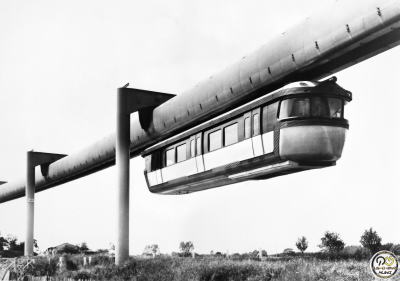 | 2-3.SAFEGE式モノレール SAFEGE式モノレールは、懸垂式モノレールの中でも国際的に最もよく知られた方式の一つであり、その独特の「箱桁内部に車両が吊り下がる」構造によって高い安全性と悪天候に強い特性を備えている。本方式はフランスのサフェージュ社(Societe Anonyme Francaise d'Etude de Gestion et d'Entreprises)によって開発され、1950年代にオレルアン実験線で本格的な試験が行われた。この実験線は当時としては極めて先進的な都市交通システムの試みであり、車両が箱形の軌道桁内部を走行するという革新的な構造は、懸垂式モノレールの安全性向上に大きく寄与した。 日本国内では、三菱重工業がSAFEGE方式を導入し「三菱サフェージュ式モノレール」として商品化した。国内で営業運転された路線は、名古屋市東山動植物園の園内交通システム(日本初のSAFEGE式)、湘南モノレール、そして千葉都市モノレールの3路線である。とりわけ千葉都市モノレールは現在でも世界最長の懸垂式モノレールとして知られ、SAFEGE方式の技術力と信頼性を象徴する存在となっている。 一方、オレルアン実験線以降、フランスや欧米では日本のように大規模な商業路線としてSAFEGE方式がそのまま普及することはなかった。ヨーロッパでは、安全性と省スペース性を活かしつつ、より小型・軽量化されたSAFEGE派生方式がシーメンスによって開発され、都市部のシャトル輸送を想定したシステムとして展開された。しかし、日本のように長大路線として採用された例は見られなかった。 近年では、中国の大手鉄道メーカーである中国中車(CRRC)が、シーメンス方式に近いスケールの懸垂式モノレールシステムを開発し、重慶・青島・武漢など複数都市で建設が進められている。これらはSAFEGE方式そのものではないものの、箱桁内部を走行する構造や懸垂式のメリットを継承したシステムとして位置付けられ、新たな市場で存在感を強めつつある。 このようにSAFEGE式モノレールは、実験線から始まり、国内では三菱重工業の主導で実用化され、世界では派生方式が各地で進化するなど、懸垂式モノレールの発展に大きな影響を与え続けている。 解説・MJWS編集室 校閲・田村拓丸(MJWS) |