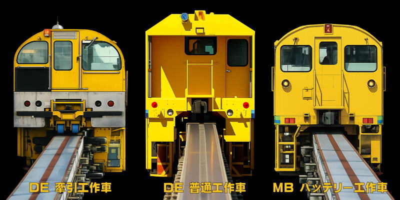 は Diesel Engine の略称で、ディーゼルエンジンを動力源とすることを示しています。夜間の保守作業や設備更新作業においては、必要な車両や資機材を所定の作業地点まで確実に輸送する役割を担っており、保守体系全体を支える基幹的な工作車といえます。